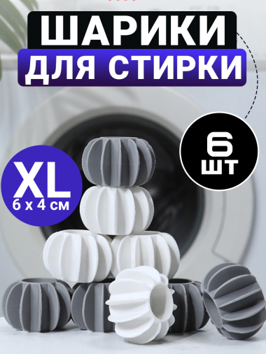 ОписаниеПредставляем Вам набор из 6 больших (диаметр уточняйте в характеристиках) многоразовых шариков для стирки белья! Это полезные аксессуары для вашей стиральной машины – как автомат, так и полуавтоматическая. Забудьте о необходимости постоянно покупать порошок и кондиционер! Эти каучуковые/силиконовые/пластиковые шарики (уточните материал) – эффективное чистящее средство, антистатик, которое поможет бережно очистить ваши вещи от грязи и пятен, предотвращая статическое электричество благодаря антистатическому эффекту.